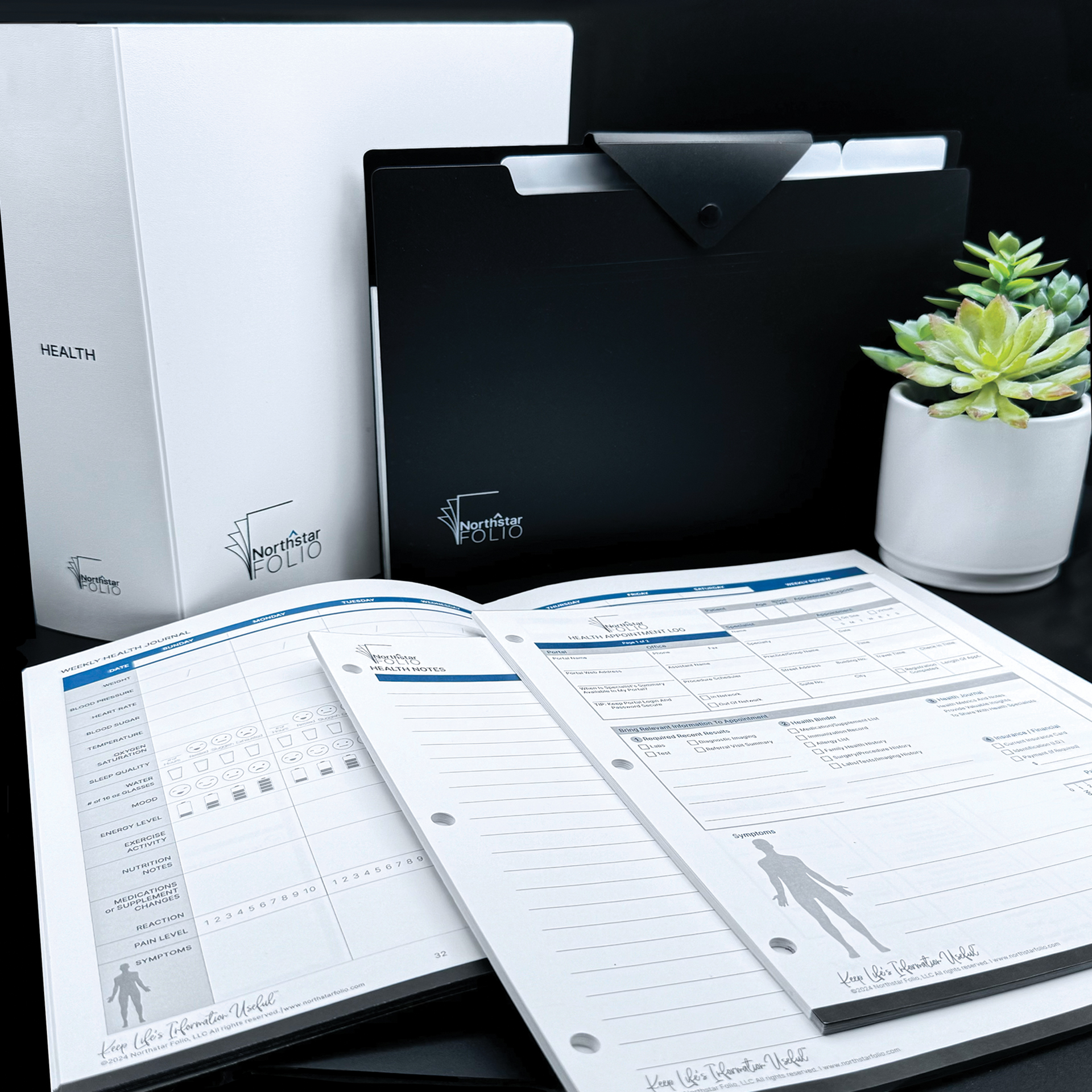 Organize your vital health history, medications & supplements, health specialist key contact information, insurance and pharmacy information, labs, x-rays, tests, doctor visit summaries and so much more (30 pre-designed tabs and 14 forms, 5 customizable tabs for your specific needs, 2 plastic business card holder pages, and 4 plastic CD holders in one accessible, easy-to-use binder. Keep all your essential records at your fingertips, ensuring you and your family are always prepared for any health-related situation. The 2.5” binder has a slanted D-Ring for maximum space and ease of turning pages, front inside pocket and is designed to hold 8.5 x11 documents and is made of poly which makes it durable and can last for many years. It includes a name tag holder for the top of the binder so that you can quickly identify which family member it belongs to.